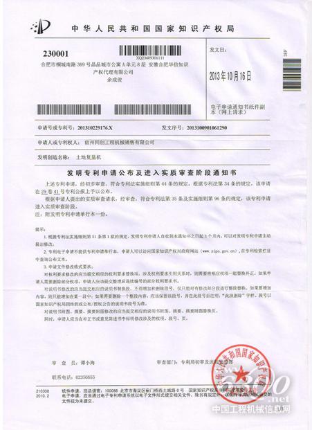 土地复垦机是一项发明专利,目前已经进入实质审查阶段。此项专利产品随着国家“规模化、集约化”土地政策的实施应运而生。它是集挖掘、推土、深耕等功能为一体的农业机械。