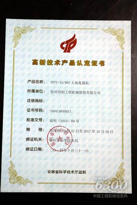 土地复垦机获得高新技术产品认定
