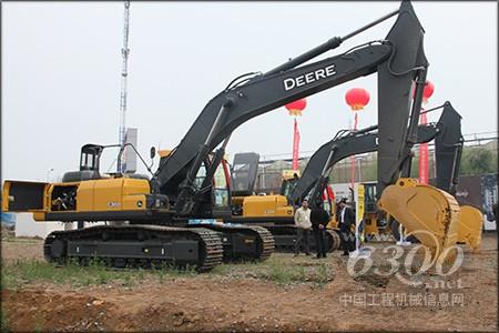 展会现场展示的约翰迪尔不同吨位的挖机及装载机