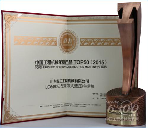 山东临工LG6460E挖掘机荣登“中国工程机械年度产品TOP50(2015)”榜单