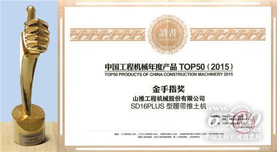 本次TOP50评选目标锁定在中国工程机械市场上的产品,评选的核心标准为产品的技术创新、市场表现和应用贡献,共产生50款入围产品,并根据技术创新、市场表现和应用贡献三个方面各产生三个单项金奖。金手指奖为最高奖项,要求三个方面的综合优势都比较突出。山推SD16PLUS推土机从参评的50款产品中脱颖而出,实至名归的荣获 “中国工程机械年度产品TOP50(2015)金手指奖”最高奖项。