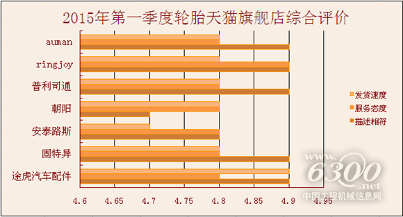 据中国轮胎商务网()电商研究中心统计,目前进驻天猫旗舰店的轮胎品牌增至12家。从现有数据来看,无论是产品描述相符程度,还是商家发货速度和服务态度,各家轮胎品牌旗舰店的分数均维持在中等水平。此外,从消费者的打分和评价方面可以看出,目前商家的描述相符和服务态度的满意度普遍较低,商家仍需在这两方面多下功夫。