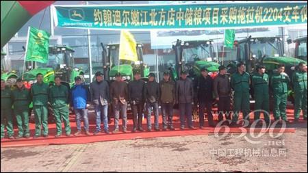 中储粮北方公司用户与经销商员工在约翰迪尔2204车队前合影留念