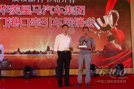 我公司的搅拌车和自卸车产品在厦门市场是第一品牌,因此,华菱物流车也凭借其卓越的性能,不断上量,在厦门市场广受欢迎,尤其是今年以来,公司大力推广港口牵引车,订单一路飙升。厦门市金锋行物流有限公司就是其中的一家用户,已经陆续购买了70多台华菱重卡,展销会前又刚刚订了10台华菱港口牵引车,当天的展销会上,集团公司总经理助理薛永昌把代表车辆的金钥匙亲手交到厦门市金锋行物流有限公司总经理朱立金的手中。
