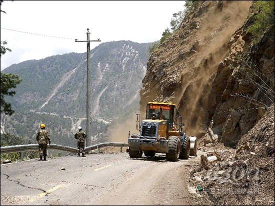 北京时间5月12日15时5分,尼泊尔再次发生7.5级地震,我国边境受灾地区震感强烈,西藏多地有明显震感。通过在场的武警交通部相关人员得知,因为地震突发加之发生滑坡,在尼方一侧抢通道路的中国武警交通救援大队被迫停止作业,吉隆镇至吉隆口岸的道路发生两处滑坡,交通彻底中断。下图为5月12日强震过后,投入救灾的柳工装载机正在进行清障作业。