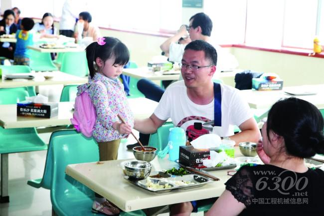 食堂里,宝宝与爸妈一起享受“工作餐”