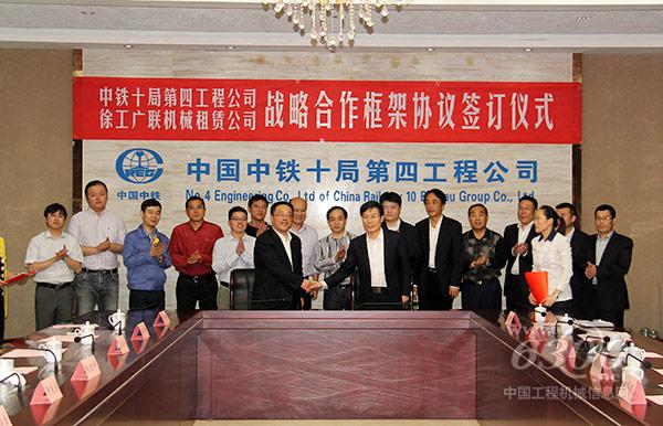 近日,广联公司与中铁十局第四工程公司签署了战略合作框架协议。根据合作协议内容,中铁十局第四工程公司在今后施工项目中将首选租赁徐工广联公司的设备资源。
