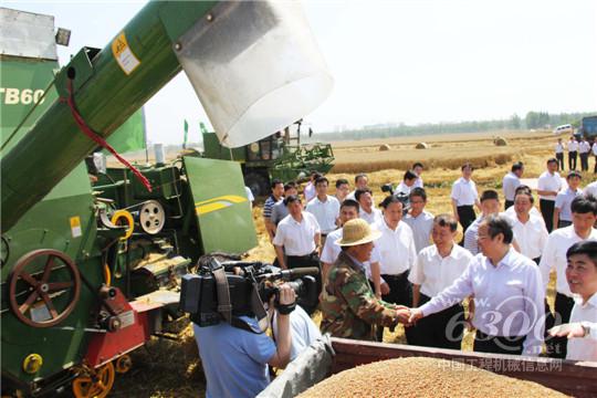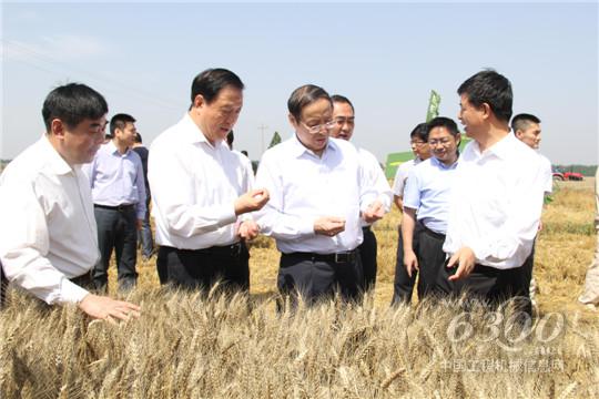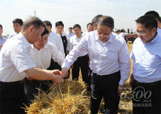 王学军来到中联重科小麦机收现场,看到“收割+秸秆打捆” 一体的谷王TB60小麦收割机高效机收的同时又将秸秆一捆捆的吐出时,表示出了浓厚的兴趣,在详细询问了该机型的工作原理、工作效率后,称赞中联重科为秸秆处理找到了一条新出路。王学军勉励中联重科要不断创新,结合国家政策导向,通过技术、产品不断升级,制造更多更实用的新型农机,为现代农业的发展做出更大的贡献。