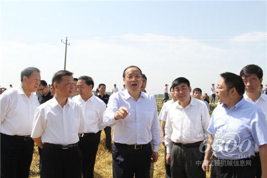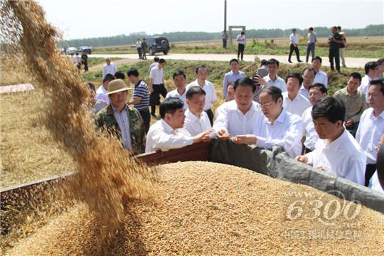 现场领导观摩谷王收割机作业