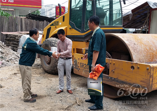 山推服务人员全面仔细的为用户检查设备,一切运转正常后对机器做了全面保养,并告诉他一些日常的保养技巧,顾不上喝一口水,又紧急赶往下一个工地。