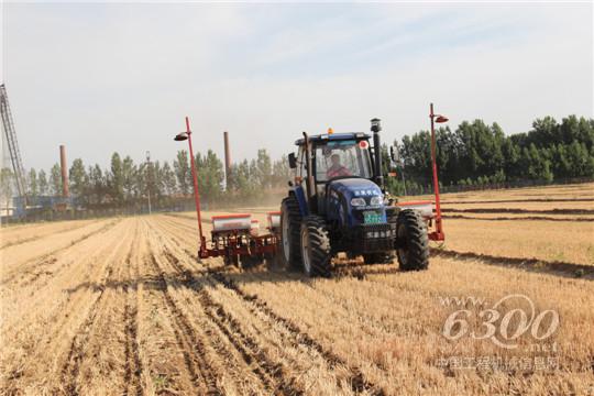 小麦收获后,立马进行玉米免耕播种作业