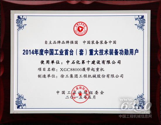 日前,以“中国制造2025迈向强国之路”为主题的第十一届中国工业论坛在北京召开,会上隆重发布了“2014年度中国工业重大技术装备首台(套)示范项目暨功勋用户”,徐工起重机械事业部研制的DG88超高米数登高平台消防车入选“2014年度中国工业首台(套)重大技术装备示范项目”,其使用单位安哥拉中基水泥有限公司荣获“中国工业首台(套)重大技术装备功勋用户”。