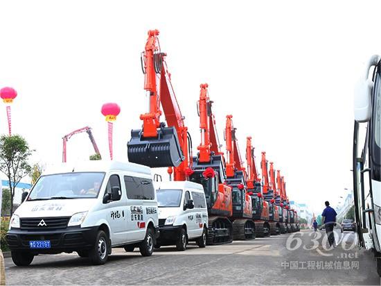 7月15日,山东常林集团公司一片繁忙景象。车间内,工人们一边紧张有序地为即将“远嫁”的“神挖”做出厂复检。车间外,整个公司院子内排满了前来运输的车辆,工人师傅正在忙碌地装车。