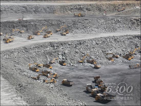 几百台清一色的徐工大吨位成套矿山施工设备配合默契地忙碌着