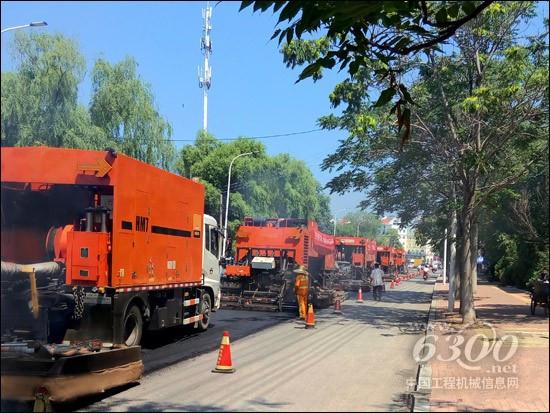 笔者在现场看到,此次施工的几条道路,由于通车10余年未大修,出现大面积的网裂、沉陷、麻面等路病。施工前,英达多台热再生设备化零为整,组成一列机组。