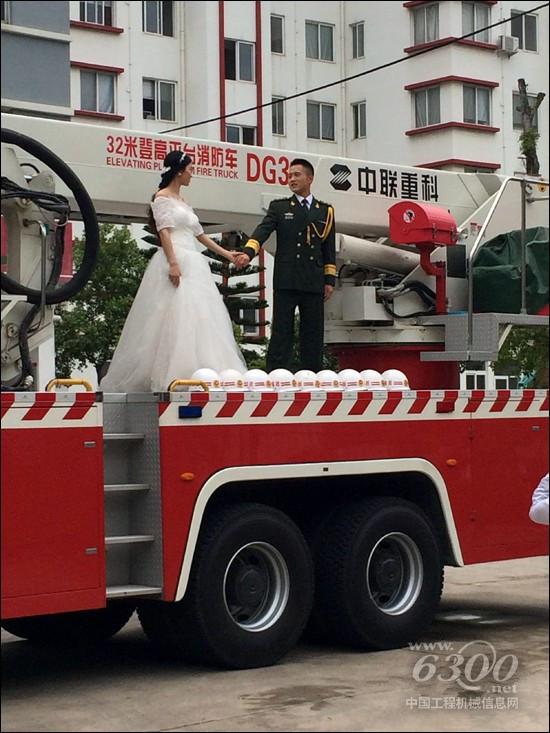 近日,在福建宁德,来自宁德霞浦消防中队的副中队长姚柳灿与自己的爱妻在中联重科32米登高平台消防车上牵手拍摄婚纱照,铭记这一幸福、浪漫的时刻。
