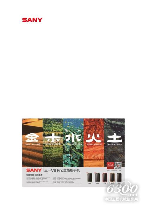 2015 年 5 月,三一集团推出了中国工程机械首款 4G 三防手机——SANYV8 Pioneer 先锋版手机,手机上市仅一周,就吸引了 8 万人关注,销售超过百万元,50 余家主流媒体竞相报道三一手机上市新闻。短短三个月的时间,三一手机已经风靡整个工程机械市场,SANY V8 手机阳刚大气,俊朗简约的外型获得众多客户的青睐。