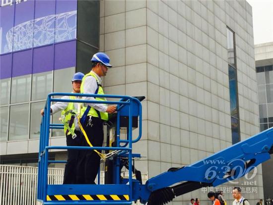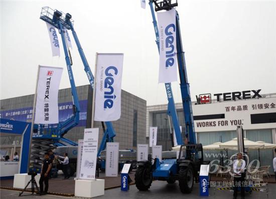 与会者在展台试乘吉尼高空作业平台