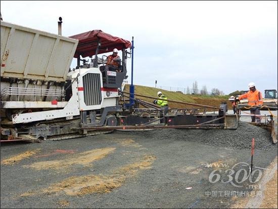 2013年5月,一条由法国北部城市勒芒通往雷恩的新TGV线路正式开工,作为著名的法国高速铁路大西洋支线的一部分,该线路将缩短巴黎到雷恩的旅行时间达37分钟。欧洲最大的建筑承包商Eiffage接下了这项价值3.4亿欧元的大项目,他们需要在2年时间内完成总长达180公里的复杂任务,其中包括摊铺宽达14米、厚度达到30mm的碎石材料和沥青材料。仅以摊铺宽度而言,这项工程就有相当大难度,苛刻的工期和质量要求则进一步对于施工方和摊铺设备提出了严格的要求。