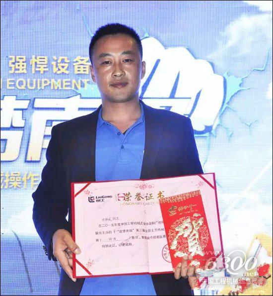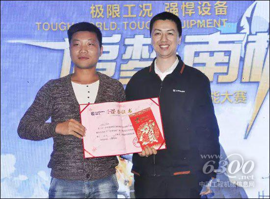 安徽柳工朱总为起重机组冠军许金浪颁奖