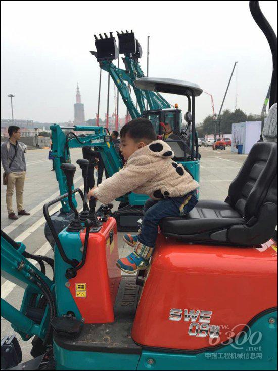 在展会期间,一台台山河智能“迷你”装备不同于以往庞然大物,精巧而灵活,展现精新本色。人声鼎沸中,SWL3220轮式滑移装载机正在进行现场表演,驾驶室大角度前翻,定点回转,表演特技吸引了大批观众的眼球和声声惊叹!客户同时感兴趣的是SWE08U挖掘机,该挖掘机用于自家种树,挖地之类,家用也很合适。更有不少小朋友忍不住上机体验一番当小驾驶员的乐趣,玩得不亦乐乎。