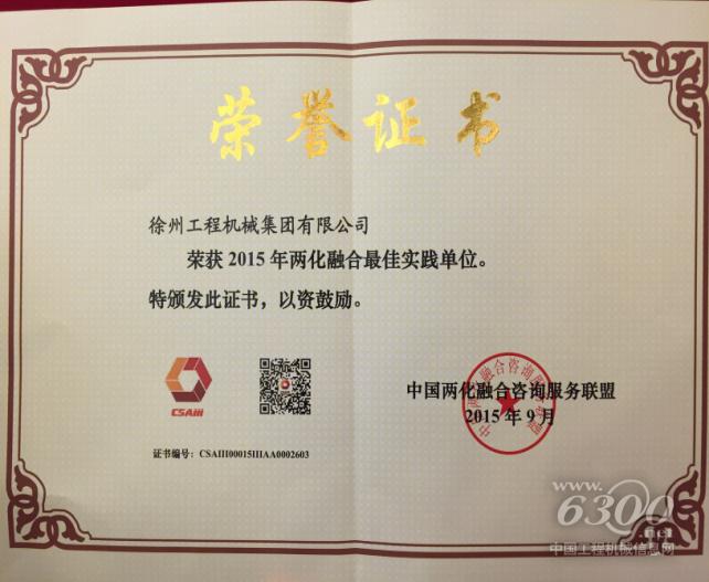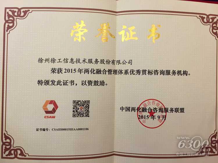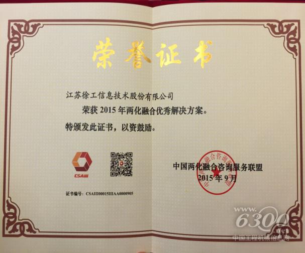 本次两化融合大会上,中国两化融合咨询服务联盟发布了两户融合优秀成果,徐工集团荣膺“2015年两化融合最佳实践单位”;徐工信息公司荣获“2015年两化融合优秀咨询服务机构”、“2015年两化融合优秀解决方案”两项大奖。