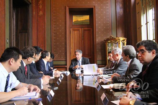 巴西当地时间11月8日,徐工集团董事长王民在巴西MG州首府贝罗,与州长Fernando Pimentel先生进行了友好会谈。州长先生率其内阁成员对王民不远万里来到MG州表示亲切的问候和诚挚的欢迎。