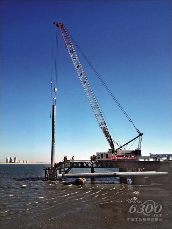 近日,在河北唐山曹妃甸的近海沿岸,中联重科QUY180履带起重机成功完成了跨海大桥预制桩吊装任务。