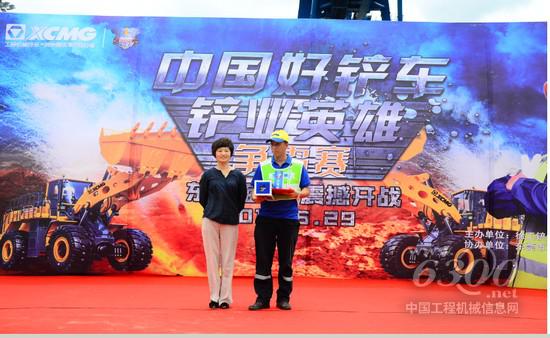 ​徐工铲运机械事业部营销公司党总支书记潘玲为第三名获奖者王晓东颁奖