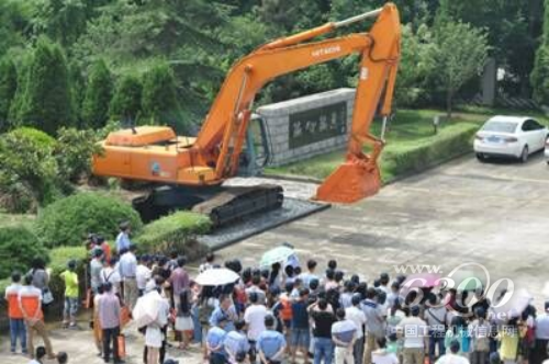 日立建机员工家属观看公司二十年前生产下线的第一台设备(1号机)表演