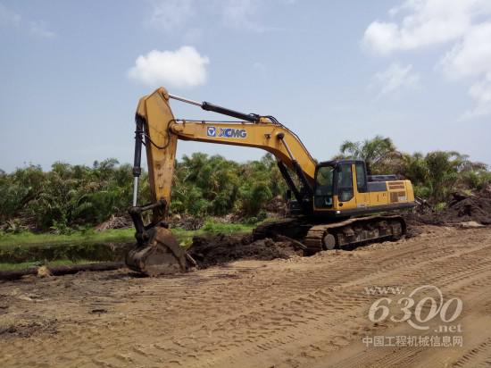 广袤的非洲不仅蕴藏着丰富的矿产资源,也拥有着巨大的石油储量。在西非某国大型炼油厂,四周矮小的热带雨林丛树密生,数十台徐工大吨位挖掘机正在奋力地掘土填埋,修建着一条宽约20米的石油通道。该炼油厂项目地处西非几内亚湾海岸,常年炎热干旱,沙尘遍野,徐工挖机针对当地气候特点对本批次设备进行了加宽履带、增装沙漠滤等适应性技术改进,使设备能够满足高温高尘多沙的恶劣工况要求。入驻工地近三个月以来,该批设备已经连续无故障工作600小时以上,“徐工产品质量可靠,让人很放心!”施工方满意地表示道。