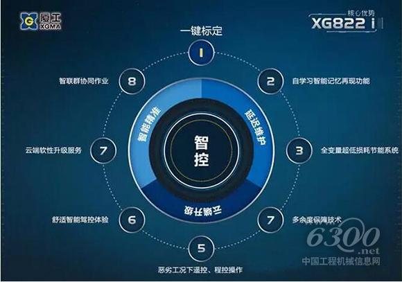 XGJE智控系统是适用于多种装备的通用系统平台,具备八大核心优势,下面以XG822i挖掘机为例进行详细介绍,见图2:
