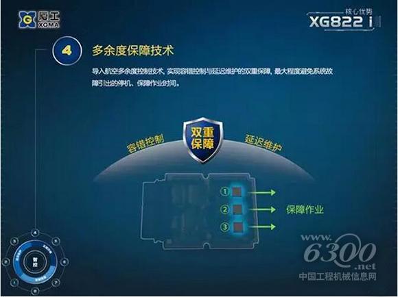 XGJE智控系统借鉴航空电液集成控制技术中的多余度控制理念,实现“主-从-备”的控制方式,改变现有工程机械电控系统存在的一次故障就停机的问题,实现不停机延时维修;结合了物联网技术实现远程管理,包括主动式预警、主动式维护保养、远程监控、远程调度管理、远程操控等;电控发动机、电控泵、电控主阀等电控元件最优匹配,运用大数据,并结合传感器系统,可实现自动作业、多工况智能化识别并自动调整工作模式,达到智能化、绿色化、精细化。
