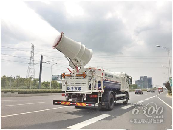 这辆像是装着一门“大炮”的环卫机械是近期苏州高新区城管局向中联重科采购的多功能抑尘车ZLJ5161TDYDFE5。抑尘车上的“大炮”是高压风炮,工作原理主要是通过高压泵、高压喷头把水箱里的水雾化,雾化之后再依靠风炮的风扇使其加速喷出,形成大面积的水雾。