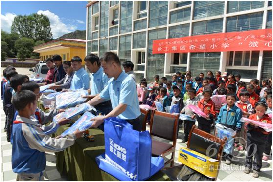 徐工起重机械事业部爱心小分队一行六人,满载着爱心书包和学习用品,冒雨前往甘南州夏河镇吉仓乡“徐工希望小学”,开展 “微心愿”爱心捐赠活动