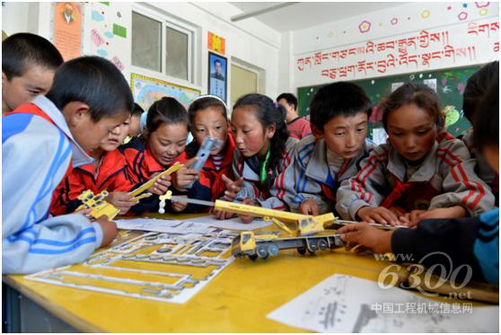走进校园,仿佛瞬间进入天真纯洁的童话世界。听说我们的到来,全校师生们齐聚操场,开心的欢呼雀跃。虽然听不懂孩子们的藏语,但他们纯真的笑容却是这个世界上最容易理解的语言。当徐工代表将200吨起重机实体模型现场送给校长完代才让的这一刻,所有的孩子们都争先恐后的一睹这份特殊的礼物。孩子们很快就和徐工的叔叔们打成一片。