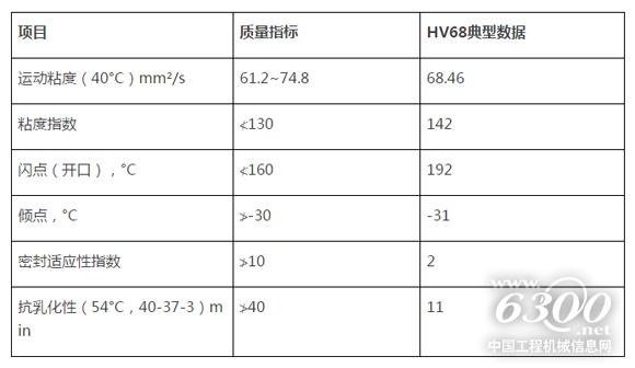 厦工工作系统专用液压油HV68(产品典型数据):