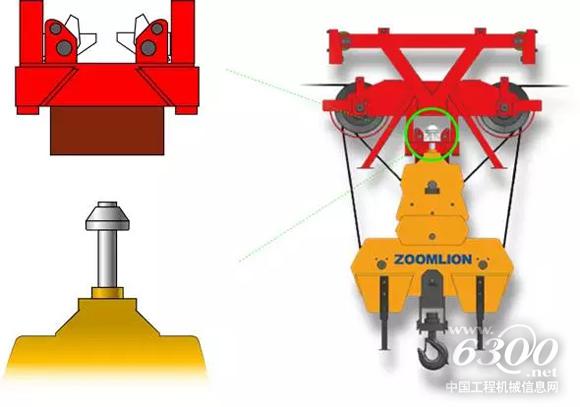 当吊钩向上运动时,如果安全装置失效或司机误操作,该装置能在吊钩冲顶后,把吊钩牢牢的固定在载重小车上,即使钢丝绳断裂,吊钩也不会从高空坠落。