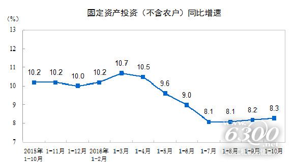 国家统计局网站消息,2016年1-10月份,全国固定资产投资(不含农户)484429亿元,同比名义增长8.3%,增速比1-9月份加快0.1个百分点。从环比速度看,10月份固定资产投资(不含农户)增长0.58%。