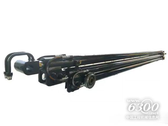 机械触发单向阀控制油缸顺序伸缩,利用机械开启单向阀,使相互组合的多个油缸实现顺序伸缩;采用内置活油管浮动式缓冲结构,满足系统大流量需求,解决了活塞杆快速移动在运动末端对缸底的冲击;伸臂油缸组外部导向结构,固定限制伸缩油缸在吊臂里面左右摆动;采用空心阀杆端止动螺母行程定位结构,对行程主阀起起限位及开启作用,结构简单,加工方便。行业内首件附带行程阀控制顺序伸缩液压缸,其功能满足大流量多级油缸顺序回缩及主机带载作业工况,实现超小缸径70顺序伸缩功能的完全实现,明显提升主机性能。