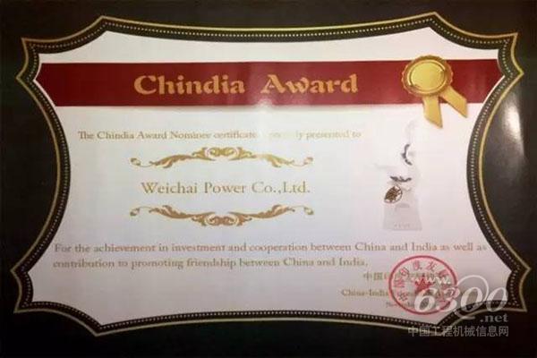 潍柴以优异的成绩荣获“中印榜样”提名奖