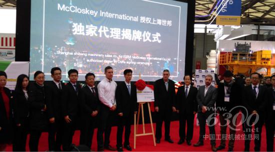 编者按:11月23日10点28分,世邦工业科技集团(SBM)与爱尔兰著名履带破碎筛分站制造商McCloskey在2016上海宝马展举行独家代理揭牌仪式,McCloskey 授权上海世邦机器销售有限公司代理销售其全系列履带破碎筛分设备,并初步划定中国及中国客户在海外的投资地为合作区域。