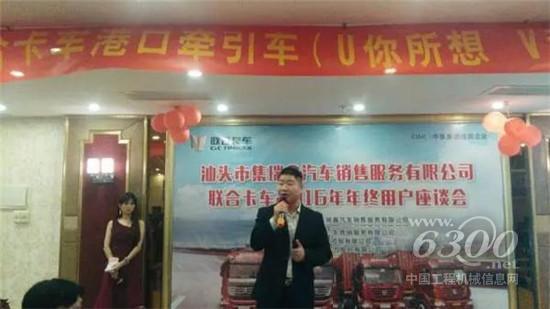 联合卡车粤东省区副经理傅绍文、粤东省区服务经理曹立伟、联合动力广东省区经理董清华、三角轮胎广东省区经理于洋、汕头市宏威集装箱运输有限公司总经理袁喜昌、潮州市混凝土搅拌站总经理王总等嘉宾参加了此次用户座谈会答谢活动。