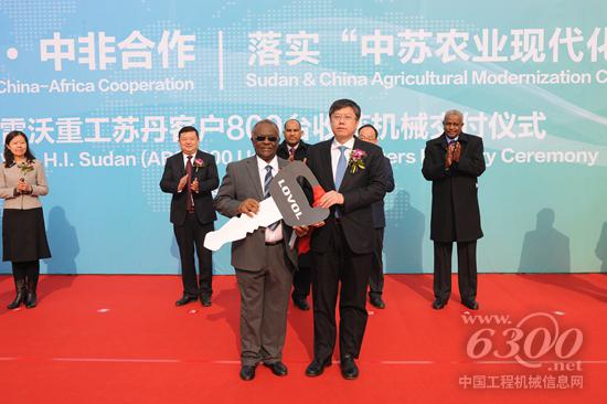 雷沃重工董事长王桂民向苏丹农业银行特派代表穆斯塔法交付钥匙