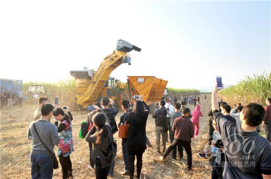 上千名观众在柳工甘蔗收获机现场作业展示区观看
