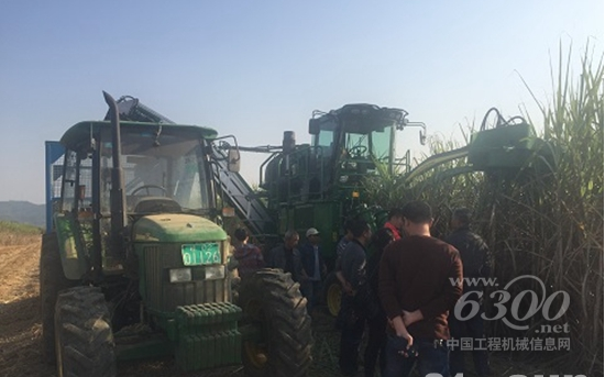 约翰迪尔工作人员向农业部副部长张桃林一行介绍甘蔗机产品特色