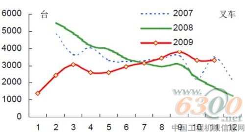 然而,受全球经济低迷影响,年初以来,叉车的同比降幅超过30%,是所有工程机械行业中势头最差的一个子行业,出口也非常低迷,维持了超过50%的同比降幅。中国工程机械信息网行业分析师认为,与其它工程机械不同,叉车与固定资产投资的直接相关性较小,直接反映宏观经济的冷暖,因此单纯政府投资的大规模基建项目对其拉动有限,其复苏滞后于其它工程机械产品。而6月份叉车出现环比的大幅上涨,23%的涨幅仅次于三月份的季节性恢复,与全社会货运量环比正增长相匹配,是下游微观经济层面回暖的积极信号。