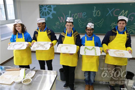 有模有样的揪髻子、擀面皮、包饺馅……在技师学院烹饪教室,他们与导师和学生们一起,包起了中国传统美食饺子,心有灵犀地拼出不同字母、徐工LOGO,五色的饺子皮象征着五大洲,表达了对徐工“金”遍布全球的美好祝福!