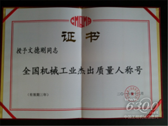 文德刚总经理被授予“全国机械工业杰出质量人”称号,是山东临工持续推进卓越绩效的又一重要成果,也表现出机械行业对山东临工产品质量管理的再次肯定和褒奖。