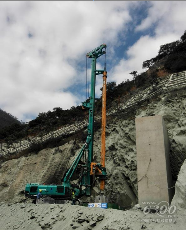 该锚索桩为4.1米*5.1米方形截面,桩深65-73米, 60兆帕的全岩层施工,且方形孔径,难度极大,必须要有一套全新的工法工艺,山河智能服务团队经过反复探讨研究,试桩期间,山河智能SWDM45旋挖钻机仅用一个月即能完成一个桩,而同场施工的国内某知名品牌超大旋挖足足要耗时3个月才得以完工,只能退场。所以,经过谨慎选择与严格考核,施工方最终选择了山河智能SWDM45旋挖钻来担当此次开挖与成孔重任。